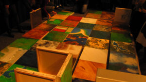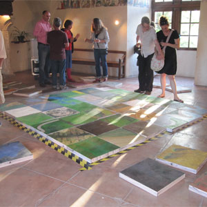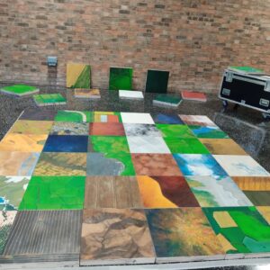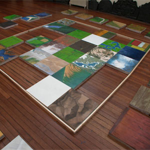 ‘Europe the Game’ is 54 oil on wooden panel paintings of landscapes from a birds eye view. It is an interactive painting, meaning that audiences are asked to choose which of the 54 landscapes fit into the frame of Europe. The frame can contain a maximum of 36 landscapes. Audiences choose what is Europe and what isn’t.