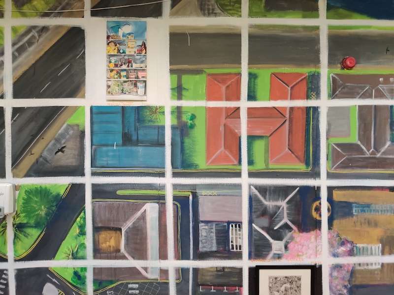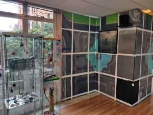 The image below is the walk I took in E2 and the way that nature took back London. The rest of the images across the walls of the gallery are other parts of London, denuded of people and traffic, and suddenly welcoming a wide range of non-human animals, imagined from above.