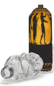 b. ceramicists were a low-status group and not artists in any contemporary understanding of the term, c. ancient Greek red-figure and black-figure pots were skeuomorphs (playful pretend versions) of metallic objects.black = oxidised silver red = gold deep red = bronze white = ivory 2. That equivalents exist in contemporary (Western) cultures of most instances of (existing) ancient Greek material culture. 3. That ancient Greek ceramics depict three types of contemporary subject: everyday life, the gods, and heroes – not a far cry from what is depicted in the tabloids.