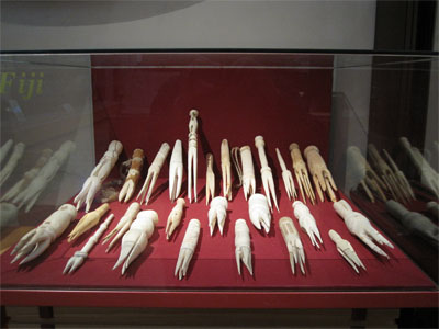 Tall Stories: Cannibal Forks (2010) was displayed originally as a site-specific intervention into the Fiji display at the Museum of Archaeology and Anthropology, University of Cambridge.
